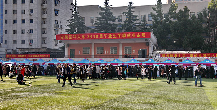 1月15日上午,“到西部去,到基层去,到祖国需要的地方去”、“服务健康中国,报效祖国和人民”、“有理想、有本领、有担当,做担当民族复兴大任的时代新人”鲜红的横幅在冬日充满阳光的操场上显得格外引人注目,华体会平台2018届毕业生冬季就业市场火爆开市。安徽省教育厅副巡视员左其琨,校领导李俊、曹云霞、刘群英、朱启星、常业军等来到现场,与用人单位和广大毕业生亲切交谈,了解用人单位需求和学生的求职意愿。