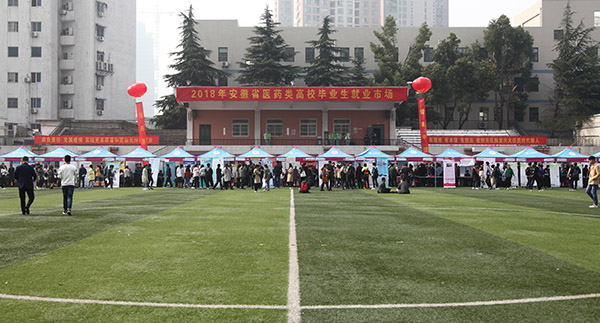 3月25日上午,由安徽省教育厅和华体会平台共同主办的安徽省2018年医药类毕业生就业市场在学校体育场举行。省卫计委副主任杜昌智,校领导李俊、曹云霞、刘群英等来到现场,与用人单位代表及广大毕业生亲切交流。