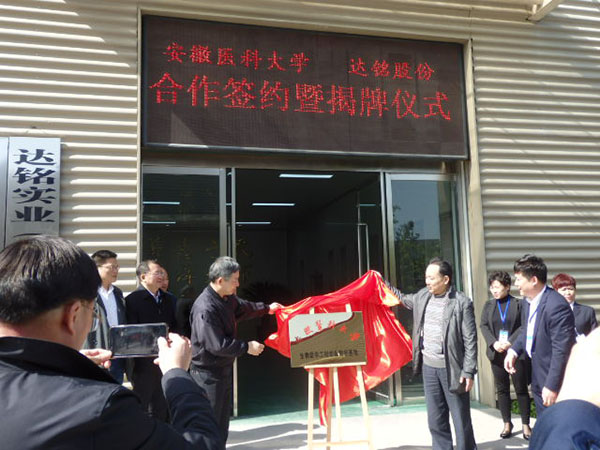 4月8日,达铭实业(宿州)股份有限公司签约成为我校生物医学工程专业教学基地,副校长朱启星为该基地揭牌。