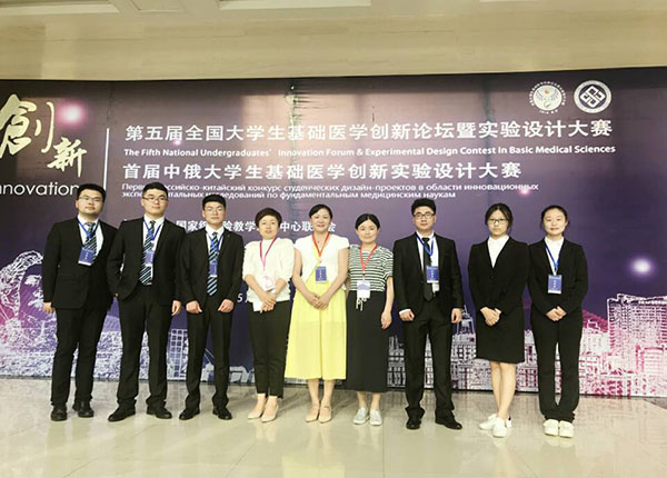 我校此次参赛的6支本科生基础医学创新及设计性实验队伍代表队,是从前期的26支队伍中选拔培训的。参赛同学在实验教学中心汪思应、基础医学院杜鹃等老师带队下,展示了扎实的基础知识、清晰流畅的表达、沉着灵活的答辩。其中,基础医学院赵俊老师指导的2014级临床医学5+3孟晨旭组获一等奖,胡先宇等6名同学分获其他奖项。