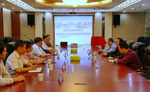 《安徽日报·思想周刊》编辑部负责人和学校党政办公室、宣传部、马克思主义学院负责人参加揭牌仪式。(马克思主义学院)