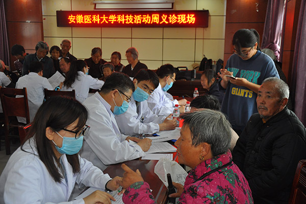 在学校科技活动周之际,2018年5月25日,校长曹云霞率学校相关部门负责人和一附院临床专家团队,赴霍邱县城关镇及泽沟村,开展帮扶和义诊工作。霍邱县委常委、宣传部长储叶来陪同。曹云霞一行参观了城关镇南西戎村村部,考察了泽沟村小学及村卫生室建设情况,走访了贫困户,并与大家进行了座谈。