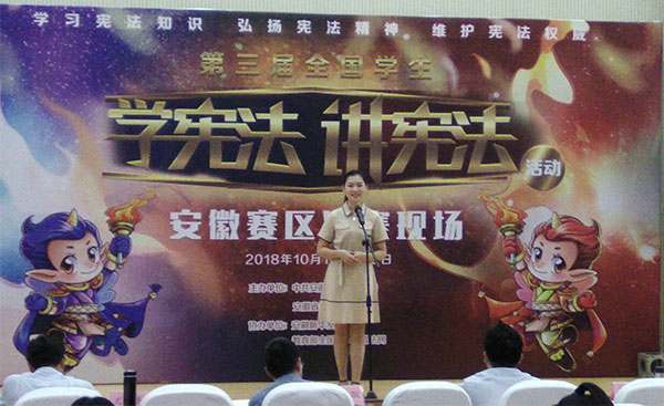 据悉,“学宪法讲宪法”活动旨在深入贯彻党的十九大和十九届二中、三中全会精神,以习近平新时代中国特色社会主义思想为指导,认真落实中央关于深入学习宣传和贯彻实施宪法的有关精神,在教育系统率先升华尊崇宪法的意识、掀起学习宪法的热潮、践行研究宪法的成果、养成遵守宪法的行为、落实维护宪法的责任、显现运用宪法的效果,引导青少年自觉成为宪法的忠实崇尚者、自觉遵守者、坚定捍卫者。本次比赛分为小学、初中、高中、大学四个组别,安徽省各市、直管县和高等学校精心组织,选送了优秀选手,最终,小学组、初中组、高中组评出第一名选手及高校组评选出的四名选手代表安徽省参加全国比赛。(校新闻中心、马克思主义学院)