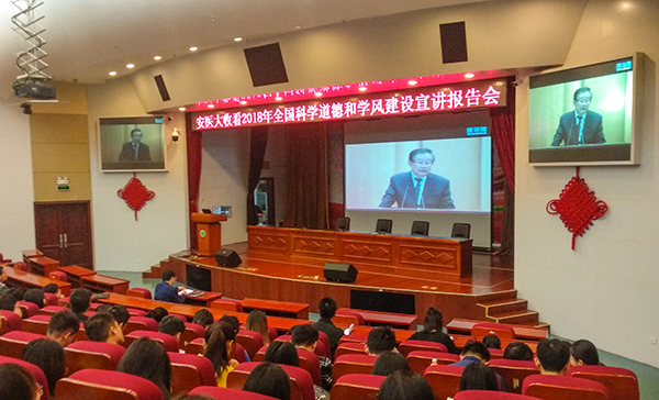 10月15日下午,华体会平台组织师生共同观看“2018年全国科学道德和学风建设宣讲教育报告会”直播,直播会场设在新图书馆第一学术报告厅。校党委副书记刘群英与师生一起聆听报告。