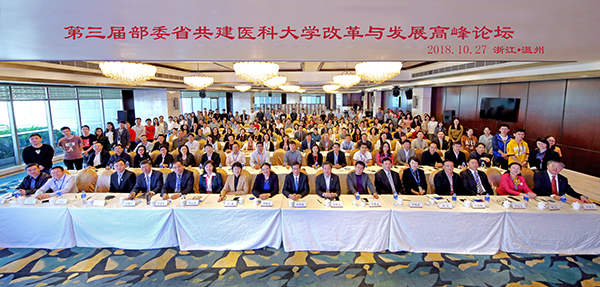 10月27日,第三届部委省共建医科大学改革与发展高峰论坛在温州医科大学召开,校长曹云霞应邀出席大会并作主旨发言。此次会议围绕“以本为本 医学教育”的主题进行深入交流与研讨,来自15所部委省共建医科院校的校长、专家、学者代表参加会议,国家卫生健康委员会科技教育司、浙江省教育厅、卫生健康委等相关领导参加会议。