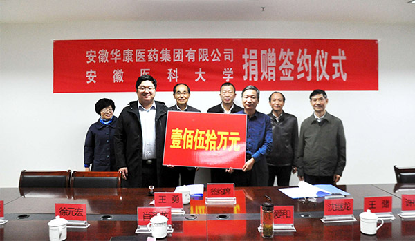 11月8日下午,我校与安徽华康医药集团有限公司在知行楼A楼五楼接待室举行“华康检验研究生奖学金”签约仪式。副校长肖圣龙出席会议并致辞,校基金会理事长孙爱和出席会议并签署捐赠协议。
