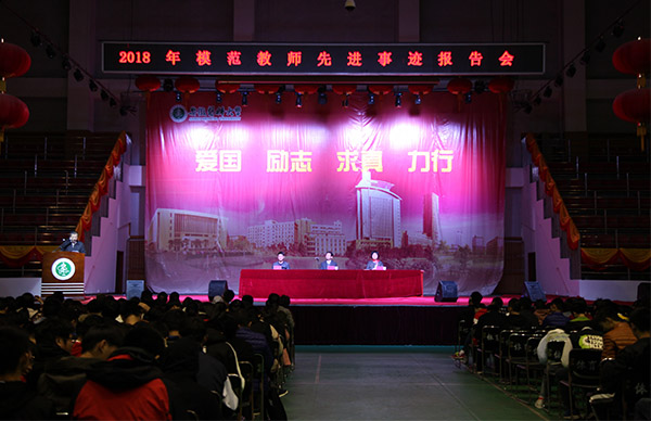 11月16日晚,学校2018年模范教师先进事迹报告会在校本部体育馆举行。校党委书记李俊出席报告会并讲话,副校长肖圣龙主持报告会。