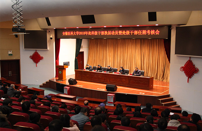 12月26下午,学校在图书馆第一学术报告厅召开2018年处科级干部换届动员暨处级干部任期考核会议。校党委书记李俊作动员报告,校长曹云霞主持会议,校领导刘群英、余永强、肖圣龙出席会议。