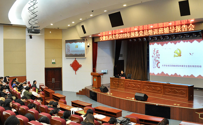 12月28日晚,校党委副书记刘群英在图书馆第一学术报告厅为学生预备党员培训班全体学员作题为《大学生党员要做德智体美劳全面发展的楷模》的专题辅导报告。