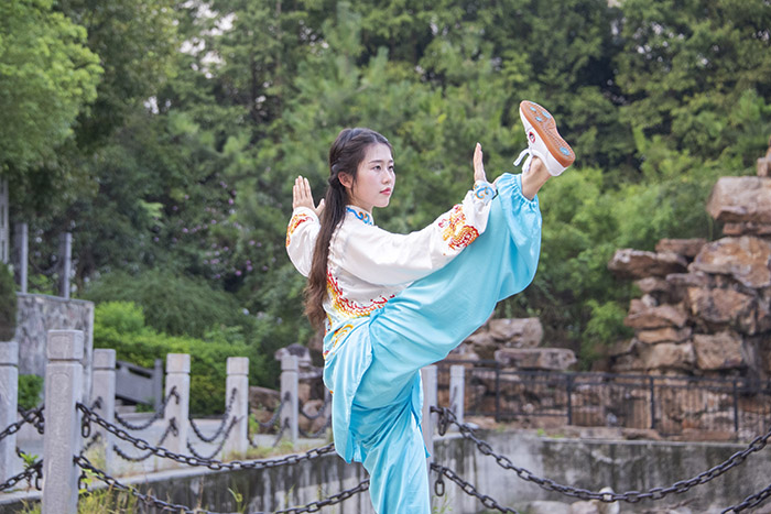 衣袂飘飘,姿态潇洒,一招一式刚柔并济,动作如行云流水,时而停下脚步,温柔地对着镜头进行讲解……学校的蠡舟湖畔,你总能看到这样一个清瘦却又挺拔的身影。从百花盛放到秋风落叶,从高温酷暑到凛冽寒冬,连太极服都逐渐褪去颜色,但她对太极的热爱却愈加深厚,那颗“传播安医太极文化、推动全民健康”的心也从未改变。