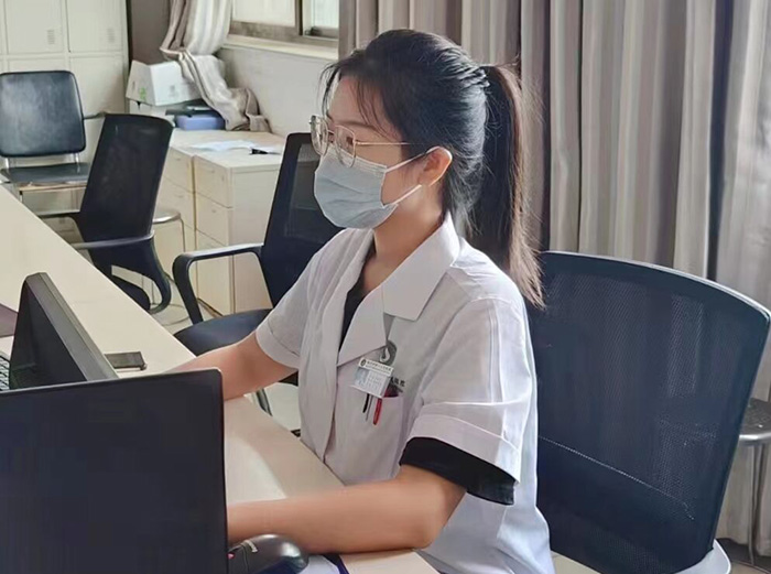 刚刚来到医院的日子里,王晓雨也始终如一,不辜负老师和家人的期待,积极投入基层医疗卫生建设事业中来。在医院轮转的时间里,她热心参与科室的基本工作,认真聆听老师传授的经验,她感叹道:临床实践确实能学到不少东西,在学校里学到的知识为更好地临床操作打基础,但由理论转化到具体的操作还需要不断地练习,“我现在还在学习阶段,未来还有很长的路要走。”
