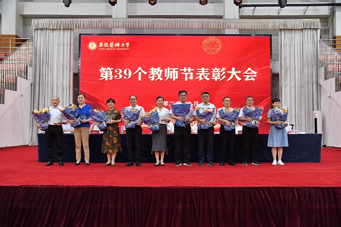 大会授予10位同志“十佳基础教师”荣誉称号,10位同志“十佳临床教师”荣誉称号,87位同志“优秀教师”荣誉称号,52位同志“优秀教育工作者”荣誉称号。