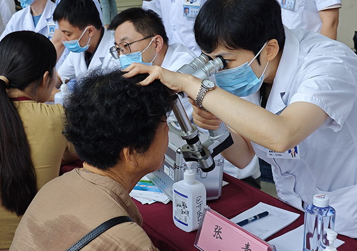 在凤台县中医院的一楼大厅,来自第二附属医院各个科室的16名专家为前来就诊的群众做检查、询病情、看病历、做诊断、提建议,让当地群众在家门口就能享受到省级三甲医院的医疗水平。实践团的同学和当地团县委组织的志愿者成为了医生们的“好帮手”,大家积极做好导医、导诊的志愿服务工作,为每一位患者提供细致入微的帮助,并把健康宣传手册分发到群众手中。据统计,义诊活动累计服务群众300余人次,发放各类健康宣传资料200余份,真正做到便民惠民,服务群众。