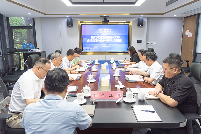杨金龙对我校调研团的到来表示热烈欢迎,并简要介绍了中科大的办学特色和医学院的教育培养情况。他指出,在当前全球化的大背景下,两校应抓住机遇,进一步加强合作,通过资源共享和优势互补,共同推进安徽省医学教育水平向全国前列迈进。