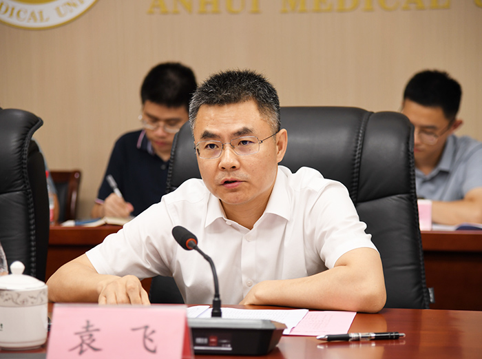 王琦对袁飞一行的到访表示热烈欢迎,并介绍了学校的历史沿革、学科建设、科研成果以及在医学教育和医疗服务方面的特色和优势。他表示,华体会平台作为我省重要的医学教育和科技创新高地,一直致力于推动医学教育的创新发展、医疗服务的质量提升。学校将进一步加强与合肥市政府合作,共同探索校地合作新模式,为地方经济社会发展贡献力量。希望双方的合作能为合肥市的科技创新和生物医药产业发展注入新的活力,也为学校的发展提供更广阔的平台和机遇。