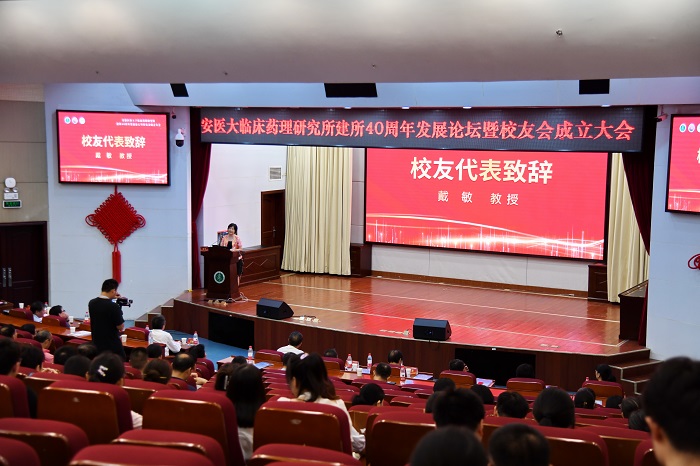 戴敏作为校友代表发言,回顾了在药研所的求学时光,并表示母校是无数学子学术研究的启蒙之地,是成就事业的根基,帮助学子用前沿的学术理念和先进的科学技术武装自己。她祝愿药研所校友会能充分发挥平台优势,汇聚广大校友为母校与社会发展贡献的强大合力,同时祝愿母校再创辉煌。