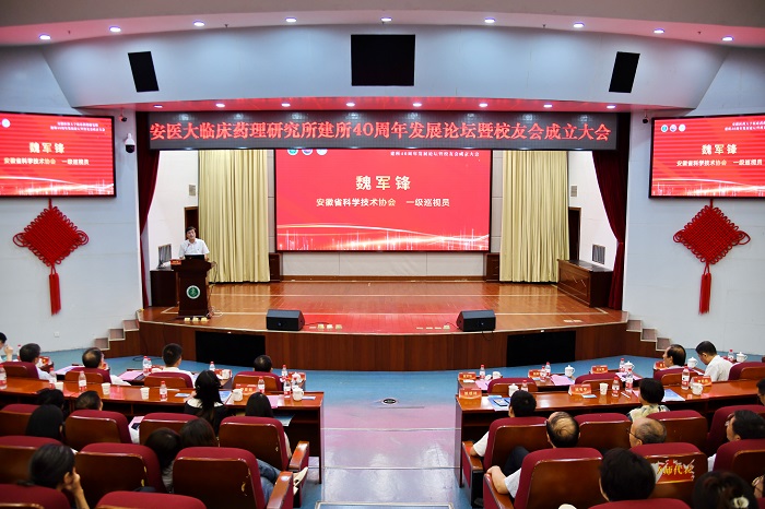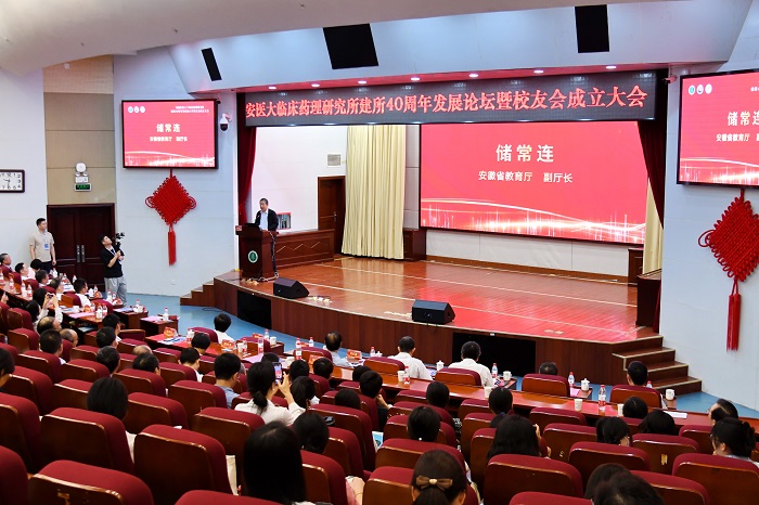 9月13日,临床药理研究所建所40周年发展论坛在校图书馆第一学术报告厅举行。安徽省教育厅副厅长储常连、省科学技术协会一级巡视员魏军锋、校党委书记王琦出席论坛并致辞,校长翁建平主持开幕式。学校原党委书记李俊,校党委常委、副校长吕雄文,校党委常委、组织部部长李阳新、统战部部长顾秀平,我校校友、安徽中医药大学原副校长戴敏、蚌埠医科大学副校长刘浩出席论坛。