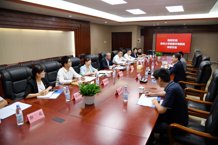 9月23日上午,深圳大学附属华南医院院长吴松率队来校交流座谈。会前,校党委书记王琦亲切会见吴松一行。校长翁建平出席交流座谈会,学术副校长张智主持会议。