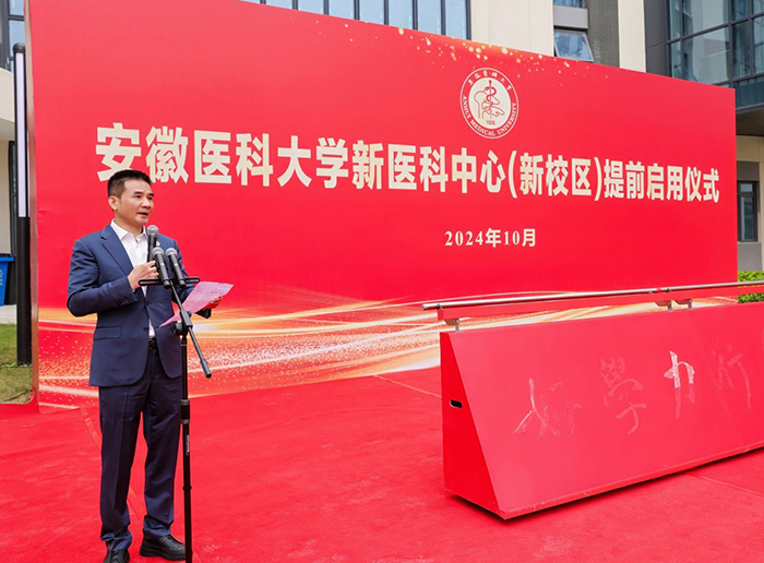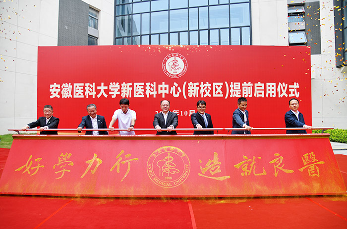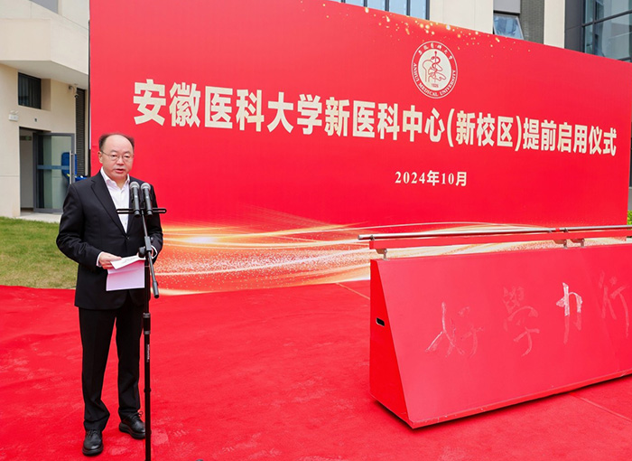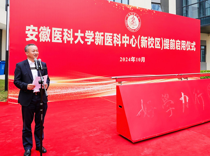王琦对省委、省政府和省委教育工委、省教育厅的倾力指导,以及各级领导、社会各界的鼎力支持表示感谢。他指出,打造世界一流水平的新医科中心是安医人坚持不懈、矢志不渝的“百年梦想”,是安医大夯基垒台、立柱架梁的“百年工程”,不仅是学校立足当下、开创未来的头等大事,也是安徽医学教育事业发展历程上的一件大事、喜事。学校将以新校区启用为新的历史起点,以更加强烈的历史主动精神、更加坚定的时代责任意识,奋力谱写一流医科大学建设新篇章,努力培养更多守护人民健康的医学高素质人才。