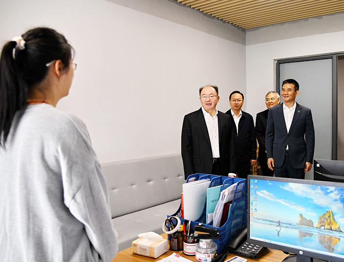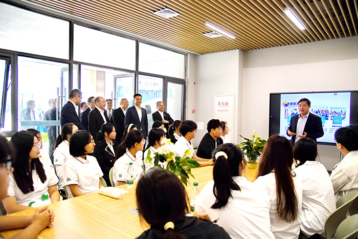 仪式结束后,钱桂仑在校领导陪同下,参观视察了新校区教学楼、学生宿舍、食堂、学生活动中心等区域,了解新校区运行情况以及新生入住后的学习生活感受。