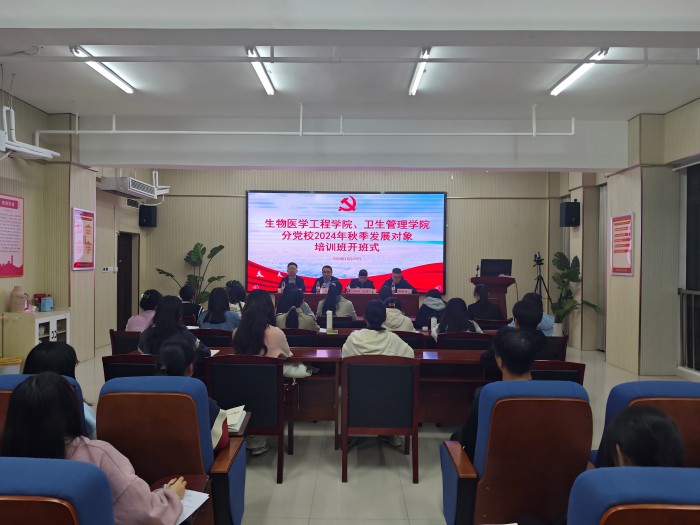 10月25日,生物医学工程学院、卫生管理学院联合分党校2024年秋季发展对象培训班开班式在东校区弘毅楼1103会议室举行,校党委常委、组织部部长李阳新出席开班式并讲话。
