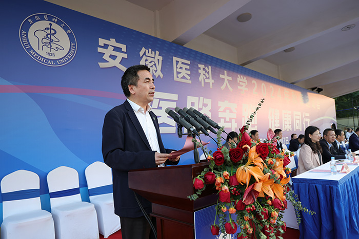 吕雄文代表学校,充分肯定了敢于拼搏、奋勇争先的全体运动员,向在本届运动会取得优异成绩的集体和个人表示热烈祝贺,向全体运动员、裁判员、工作人员,以及为运动会辛勤付出的全体师生表示衷心感谢。他在致辞中指出,运动会不仅是一次青春碰撞,也是一次精神洗礼。运动永不止步,青春永不停步。希望全体师生要坚持健康生活的理念,保持良好的运动习惯,把学习、工作和运动紧密结合起来,不断增强体质、锤炼意志、超越自我,以更加饱满的热情、更加昂扬的斗志、更加奋进的姿态,为明天的美好生活和学校建设一流医科大学贡献智慧和力量。