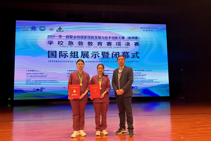 11月16日至18日,2024年“一带一路”暨金砖国家技能发展与技术创新大赛(教师赛)学校急救教育赛项决赛在江苏淮安举行。我校实验教学中心两位教师张颖、付悦琪在激烈的竞争中脱颖而出,以优异表现荣获医卫组一等奖。