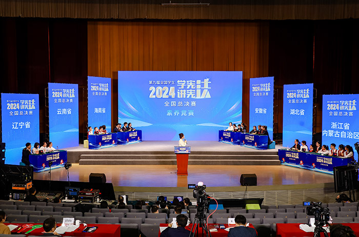 全国总决赛分为演讲比赛和法治素养竞赛两个赛道,设有小学、初中、高中和高校四个组别,参赛选手在深入学习基础上,共同讲述宪法与法治故事,表达对宪法与法治的理解和尊崇,全面展示学宪法、讲宪法的成果和风采。其中,法治素养竞赛共设置必答题、抢答题和协作题三个环节。