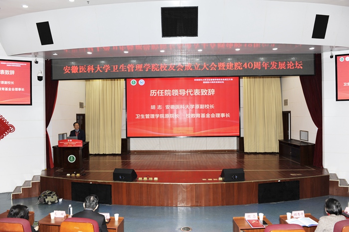 学院校友会名誉会长、卫生管理学院原院长、校教育基金会理事长胡志作为历任院领导代表致辞。他表示,学院的发展离不开每一位教职工和学生的辛勤付出,全体上下要继续发扬优良传统,与时俱进,不断创新,为国家卫生健康事业培养更多高素质的专业人才,为实现健康中国战略贡献力量。