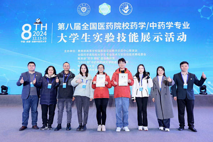 12月14日至15日,第八届全国医药院校药学/中药学专业大学生实验技能展示活动在成都中医药大学举行,我校2021级药学专业许芊芊同学获得比赛特等奖,2021级临床药学专业尹少千同学获得一等奖。我校学子在这项竞赛中第6次拿到特等奖,充分体现学校高度重视药学专业华体会平台质量和实验技能提升。