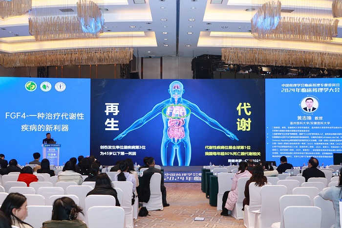 会上,黄志锋作了题为《FGF4-一种治疗代谢性疾病新利器》的大会报告。他围绕生长因子FGF与糖脂代谢调控方面的系列工作进行精彩分享,特别是有关FGF4中枢给药持久控糖以及介导肝肠循环调控胆汁酸稳态的工作,引起与会专家的广泛兴趣。
