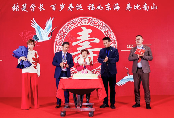 年会适逢百岁高龄校友张菱生日,现场二百余名校友共同为学长献上生日祝福。