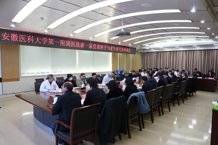1月8日下午,第一附属医院在医学保健中心二楼会议室召开新一届党委班子与老专家代表座谈会。校党委书记王琦出席会议并讲话,校党委副书记、第一附属医院党委书记徐朝阳主持会议,第一附属医院党委副书记、院长孙倍成及离退休老专家代表们参加座谈。