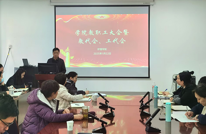 1月22日下午,护理学院召开2024年“两代会”暨教职工大会。院党委书记薛磊主持会议,并作2024年度学院工作报告。