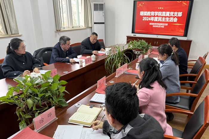 2月19日下午,继续教育学院直属党支部召开2024年度民主生活会。校党委常委、副校长、第三督导组组长吕雄文到会指导并作点评。