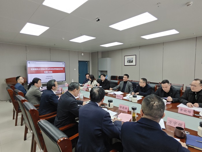 公共卫生学院院长王华介绍了建设方案的主要内容,相关职能部门结合实际工作对建设方案提出意见和建议。