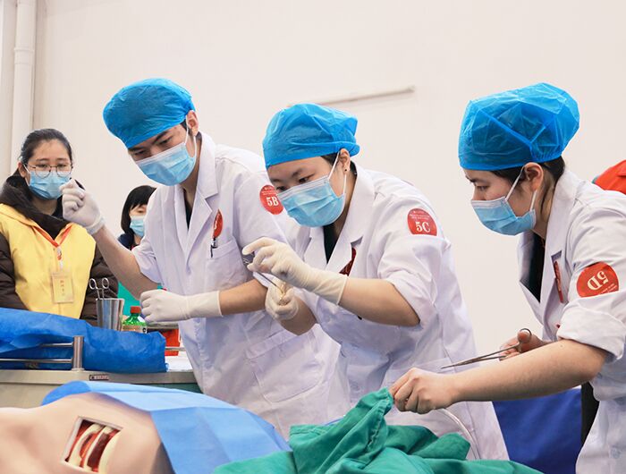 来自13家医院的19支参赛队伍共76名选手参加此次竞赛。竞赛分为初赛和决赛两个部分,初赛为站点式,共设8个站点;决赛为赛道式,共设5个赛道。考核内容涵盖病史采集、外科基本操作技术(消毒、铺巾、切开、缝合、拆线)、腔镜操作、心肺复苏、诊刮术、新生儿复苏、心电图等相关临床操作技能,高度还原了临床真实场景,全面考察选手的临床思维、临床技能、团队合作、医患沟通、应变能力等综合素养。