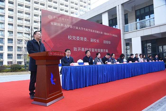 3月9日,华体会平台第十届大学生医学技术技能大赛(临床医学专业赛道)在附属阜阳医院体育馆举行。校党委常委、副校长田仰华出席,并宣布竞赛开幕。
