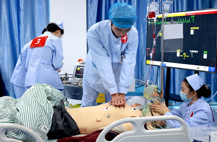 此次竞赛考核内容涵盖基础护理学、内科护理学、外科护理学、妇产科护理学、儿科护理学、急危重症护理学等相关内容,全面考察选手的临床思维、专业水平、人文素养和创新精神,来自7家医院的10支参赛队伍共40名选手参赛。竞赛分为初赛和决赛两个部分,初赛为“多站式”比赛,共设5个站点,每个站点内选手根据要求进行技能操作和理论答题;决赛为“单站式”比赛,考核团队的技能操作和综合素质,初赛胜出的4支队伍参加决赛。