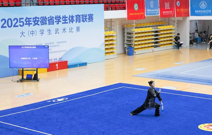 6月18日至22日,由安徽省教育厅、安徽省体育局主办,安徽省学校体育协会执行的安徽省学生体育联赛大学生武术比赛在宿州学院举行。第一临床医学院汪若晴同学和第二临床医学院的娄琪玥同学分别斩获女子太极剑和女子太极拳的冠军,药学院的刘冬同学获得男子太极拳和太极剑2项亚军。