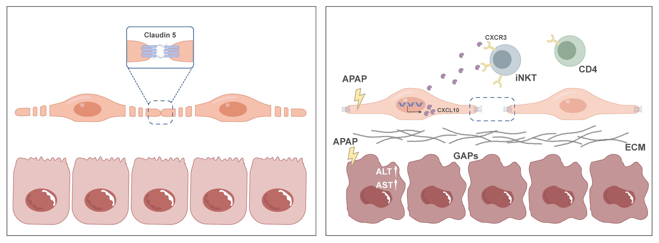 该项研究通过单细胞测序技术结合多项体内外实验,系统揭示了过量APAP刺激LSEC转变为分泌大量CXCL10的疾病特异性的LSEC3亚群,而CXCL10对于肝脏中iNKT细胞的快速募集起关键作用。研究丰富了LSEC在AILI早期的特征性变化,并证实了LSEC3是肝脏CXCL10的重要来源,同时揭示了CXCL10-CXCR3信号轴提供iNKT和CD4+ T细胞在AILI早期快速募集的关键信号,并突出了LSEC与iNKT细胞相互作用的重要性。