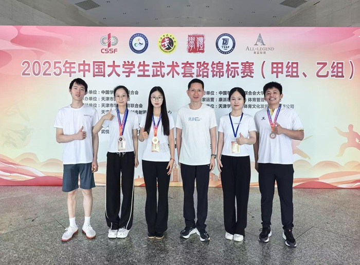 7月27日至31日,由中国学生体育联合会主办、天津市武术协会承办的2025年中国大学生武术套路锦标赛(甲组、乙组)在天津市武清区举行。我校学子发挥出色,收获多个奖项,其中第一临床医学院(第一附属医院)神经内科的研究生汪若晴斩获1项冠军和1项季军,第二临床医学院临床医学专“5+3”一体化的娄琪玥斩获1项亚军,国际学院的留学生张新天斩获1项季军,另外汪若晴同学获得体育道德风尚奖。