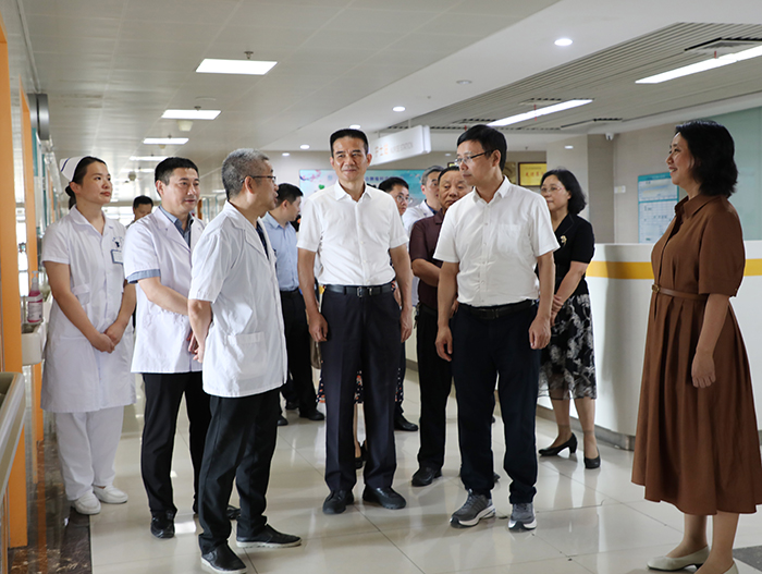 吴振宇一行实地调研了西区中西医结合肿瘤科医生办公室、示教室和病房治疗现场,了解中西医结合治疗肿瘤的特色疗法、实际效果,查看了医保基金智能监控系统实际使用情况,切身体验了“医保AI助手”智能体服务等。他指出,有效推进医保政策对学科的发展,要提高政治站位,规范诊疗行为,切实保障群众就医权益。要加强医保政策宣传,包括对临床、护理等专业医学生的医保政策培训,全面提升医务人员的政策素养和执行能力;要积极探索创新,充分发挥省医保研究院智库作用,深化DRG付费改革等医保政策研究,让医保改革赋能省属医院高质量发展;要进一步发挥公立医院适应医保支付方式改革的主动性,通过完善内部运营管理、优化诊疗服务流程、加强成本精准核算,实现医疗质量与医保效益的协同提升。