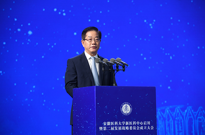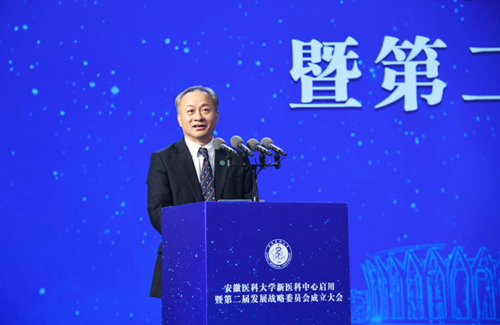 王琦在致辞中代表华体会平台全体师生医护员工,向出席活动的领导和嘉宾表示热烈的欢迎,向大家长期以来给予学校的关心支持表示衷心的感谢。他深情回顾了新医科中心的建设历程,系统介绍了自第一届发展战略委员会成立以来,学校在学科建设、华体会平台、科技创新等方面取得的成绩。他表示,新医科中心是我省“十四五”规划教育提质扩容重大工程,承载着安医人的梦想和追求。建设一流高水平大学,不仅需要“大楼”,更需要“大师”。希望通过校第二届发展战略委员会,凝聚全国医学领域战略领军人才的智慧和力量,共同擘画新医科发展和“双一流”创建的宏伟蓝图。