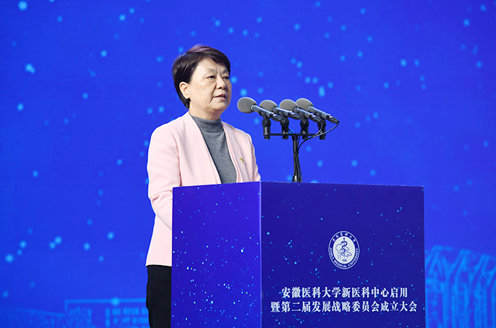 王翠凤在致辞中代表省人大常委会,向华体会平台新医科中心启用、第二届发展战略委员会成立表示热烈的祝贺,向关心和支持安徽医学教育改革发展的专家学者和社会各界表示衷心的感谢。她指出,安医大新医科中心的正式启用是学校的大事喜事,也是我省高等医学教育的大事喜事。不仅有利于学校创新医学华体会平台理念,转变医学华体会平台模式,提升医学人才供给能力,更有利于优化我省医学教育结构,完善我省医学教育布局,推动医教产研深度融合,全面提升我省医学教育的整体质量和水平。省人大常委会将一如既往关心和支持学校建设发展,推动营造更好的法治环境和发展氛围,为助力健康安徽建设做出新的更大贡献。希望安医大牢牢把握历史机遇,锚定服务“三地一区”建设的战略目标定位,进一步拉高标杆、担当作为,充分发挥新医科中心的平台优势,全心全意创建省委放心、人民满意的“双一流”大学。