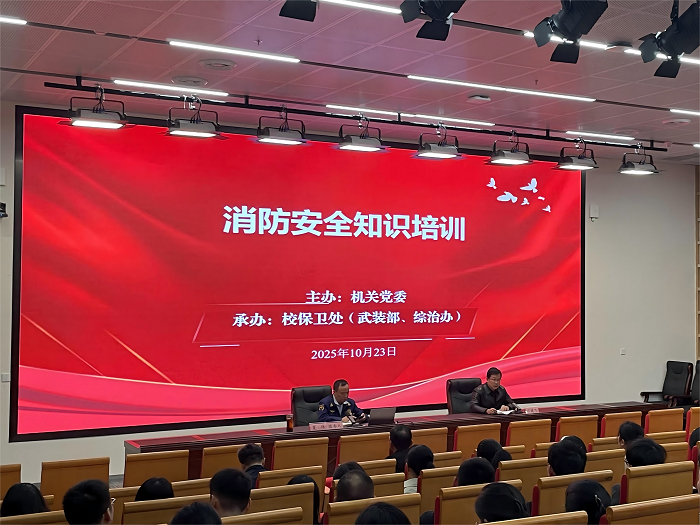 10月23日下午,机关党委联合校保卫处,在新医科中心举办消防安全知识讲座及灭火器材实操训练,以深入贯彻落实习近平总书记关于安全生产的重要论述,坚持人民至上、生命至上,切实提升干部职工的消防安全意识和应急处突能力。机关党委委员、审计处处长丁建飞主持培训会,机关全体干部职工参与培训。