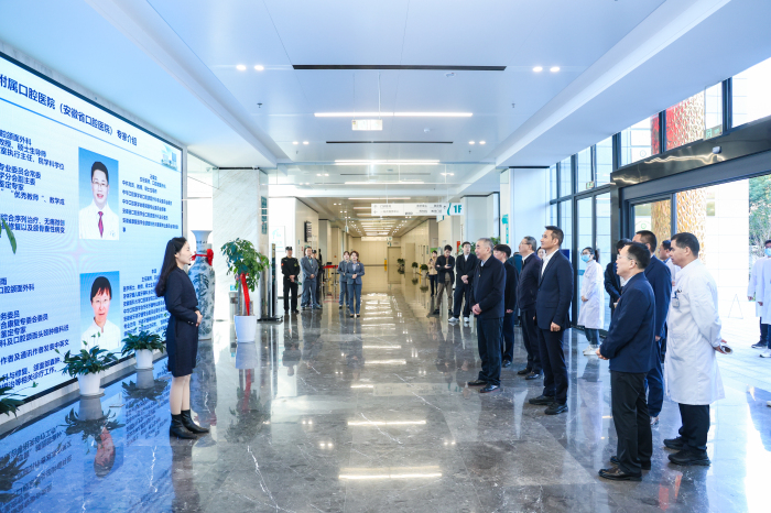 10月24日上午,安徽省卫生健康委员会党组书记刘同柱一行到我校附属口腔医院,围绕“健康口腔行动”落实成效、三级甲等口腔专科医院创建进展及智慧医院建设情况开展调研指导。校党委书记王琦,校党委常委、副校长文育锋全程陪同。