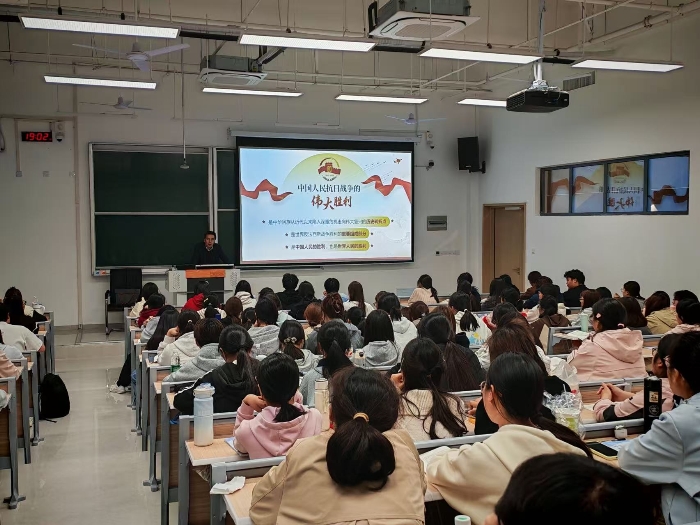 10月23日晚,校党委常委、副校长吕雄文教授在知源楼C106教室,为本科生讲授了以“纪念抗战胜利,坚定民族信念”为主题的“形势与政策”课。