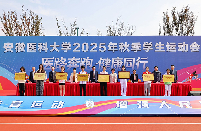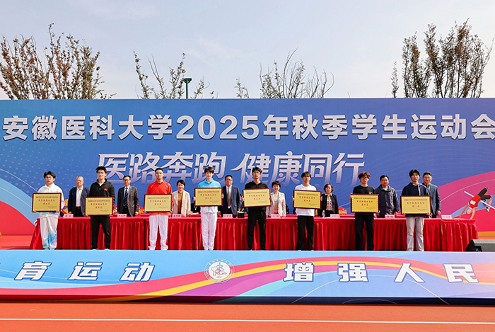 文育锋在闭幕致辞中,对运动员奋勇争先的精神表示肯定,向取得优异成绩的集体和个人表示祝贺,并向全体裁判员、工作人员以及为运动会辛勤付出的全体师生表示衷心感谢。他指出,竞技场上每一滴汗水都折射着拼搏的光芒,每一次突破都诠释着“更快、更高、更强、更团结” 的真谛,充分展现了安医学子高超的运动水准与高尚的体育素养。赛场内外的动人瞬间,共同凝练出团结协作、顽强拼搏的中华体育精神,更生动勾勒出新时代安医人蓬勃向上、奋斗有我的精神风貌。他希望广大学子把赛场上的拼劲转化为人生路上的韧劲,将健康生活的理念融入学习科研的日常,以强健体魄、坚韧意志、奋进姿态,迎接美好未来,为学校创建“双一流”大学贡献青春力量。