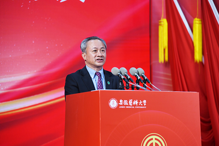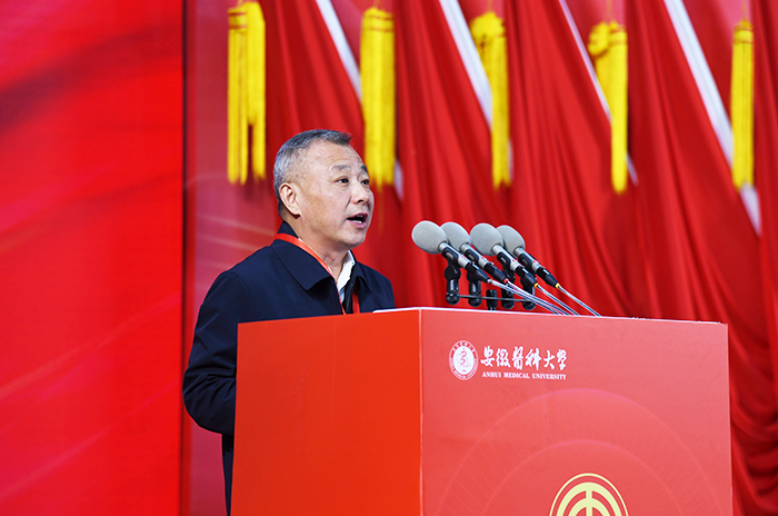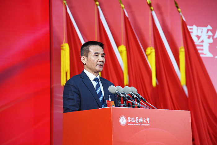 大会号召,全校教职医护员工坚持以习近平新时代中国特色社会主义思想为指导,全面贯彻党的教育方针,落实立德树人根本任务,锚定“六个一流”具体任务,发扬舍我其谁的担当精神、只争朝夕的拼搏精神、久久为功的钉钉子精神,把实干之力、奋斗之志、奉献之为融入厚德、有为、创新、开放、幸福的“双一流”大学创建,在学校迈入第二个百年新征程上,书写出无愧于时代的精彩答卷,为教育强国、健康中国和美好安徽建设作出新的更大贡献。